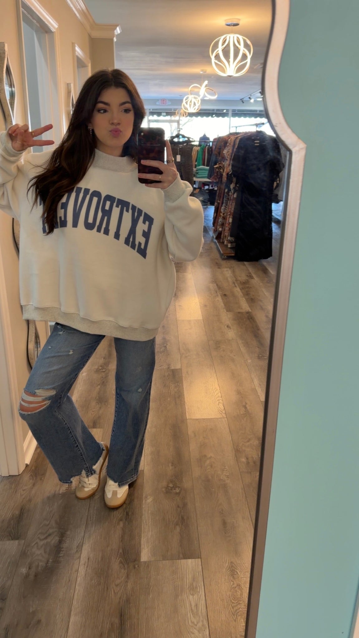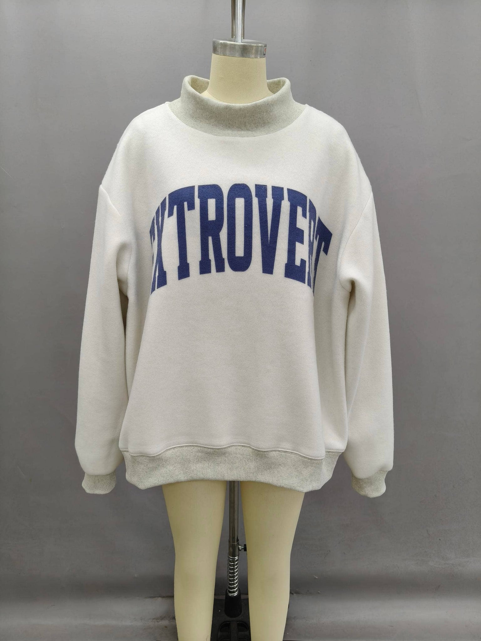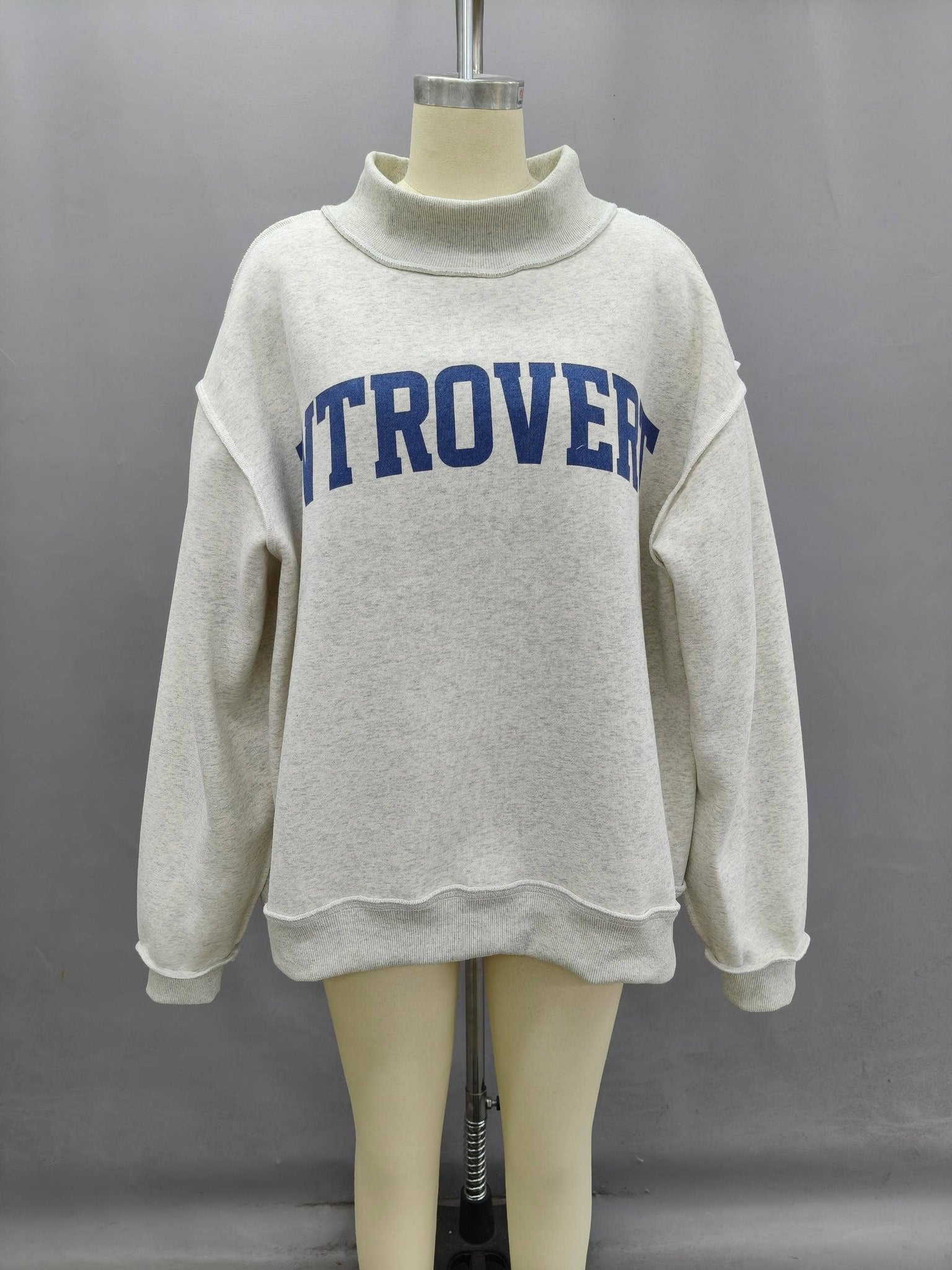 'INTROVERT & EXTROVERT' Graphic Print Reversible Mockneck Sweatshirt