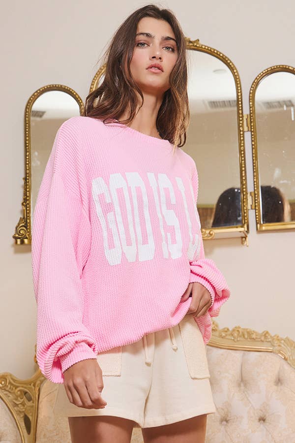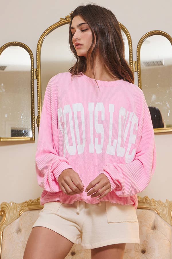 'GOD IS LOVE' Print Ribbed Oversized Graphic Sweatshirt - ‘GOD IS LOVE' Graphic at front - Long drop-shoulder sleeves - Crew neckline- Textured knit fabric - Loose fit