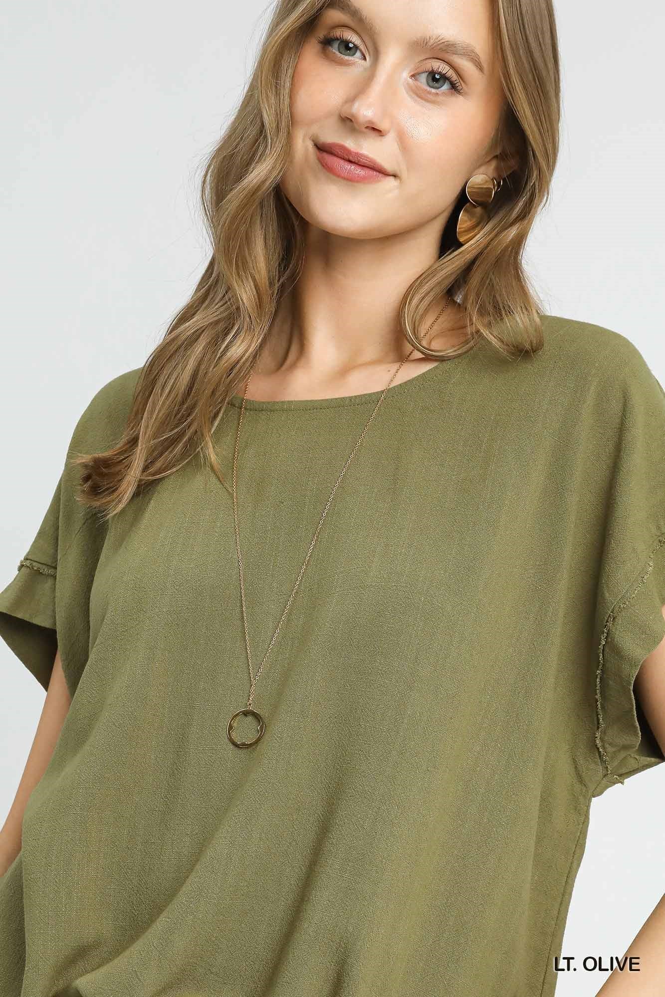 Check out this drawstring linen blend top.