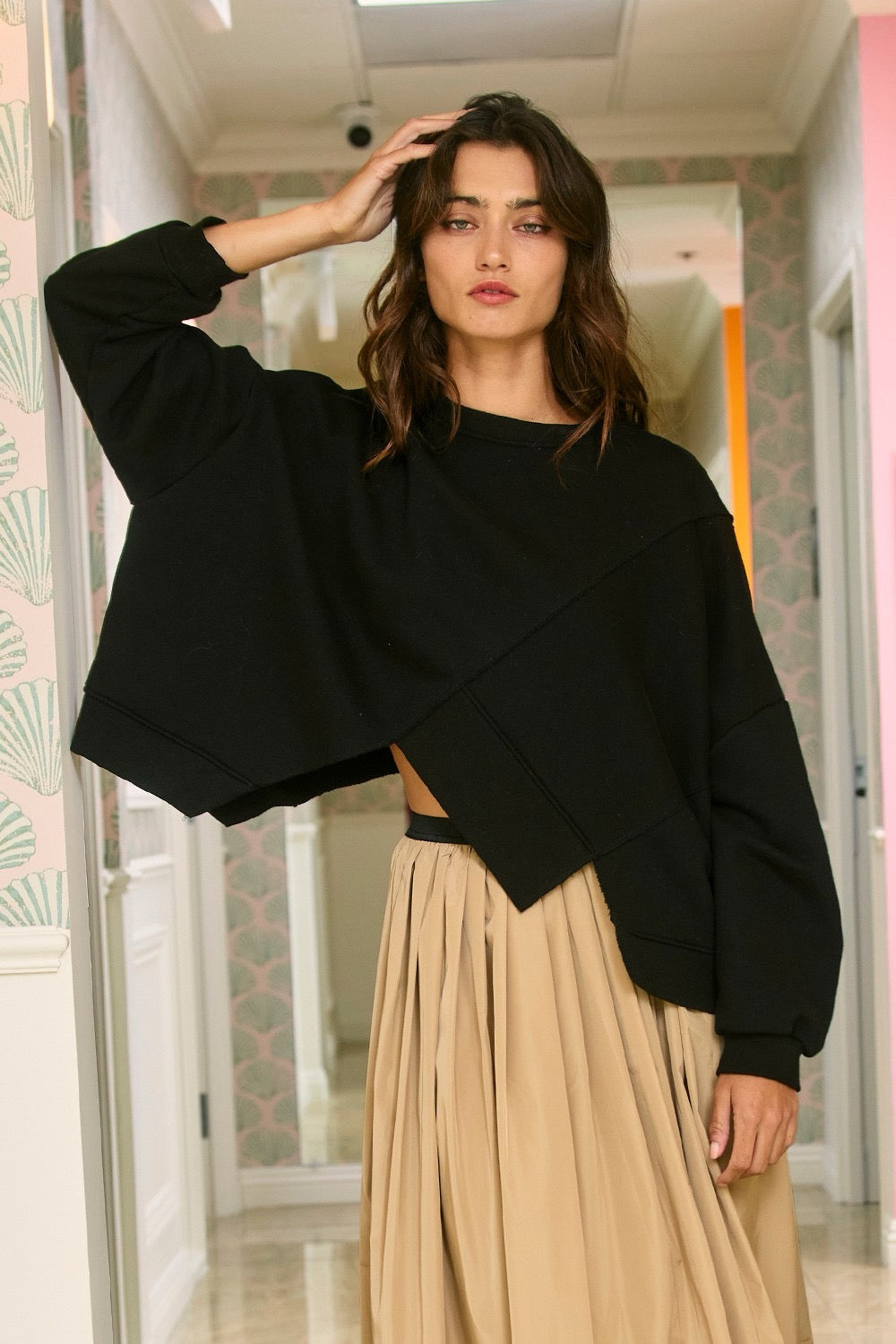 Check out this adorable asymmetric hem solid terry sweatshirt.